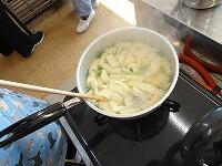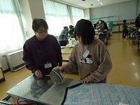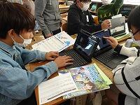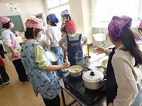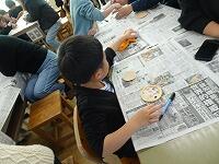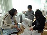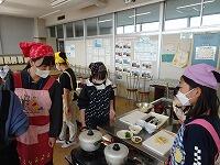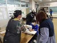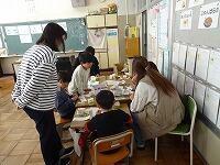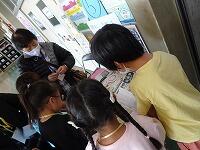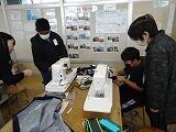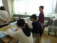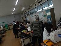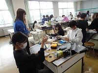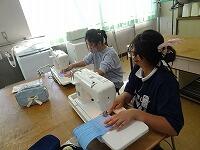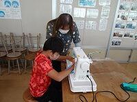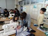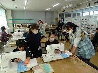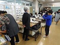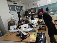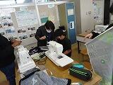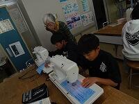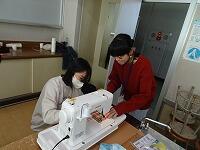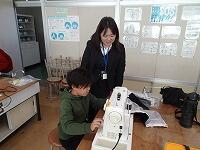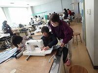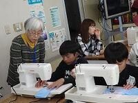 5年生の家庭科ボランティア、ミシンの使い方を教えていただいているところです。