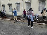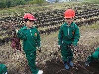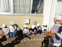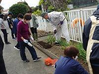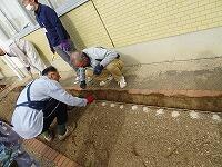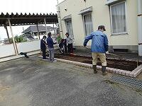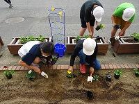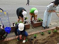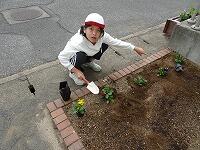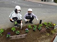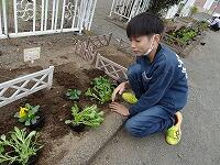 昼休みに栽培委員会の児童が、パンジーを植えているところです。