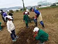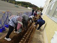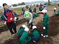 11月12日(水)、昼休みに全校生でチューリップ球根植えを行いました。更生保護女性会、保護司様、地域の茂呂様にたくさんの球根をいただきました。社会福祉協議会の坂野様、地域の鴻嶋様、広瀬様、みなさまにお世話になりました。
