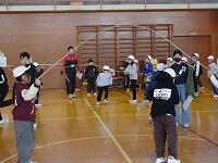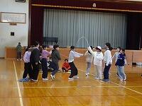 チームごとに、長縄跳びの練習をしてチャレンジ!!