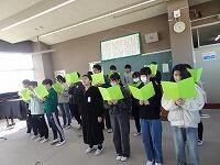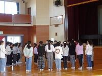 きょうは、5年ぶりに「ボランティアのみなさんへの感謝会」を実施しました。全校生で「校歌」を歌ったり、6年生の「よっちょれ」を披露したりしました。
