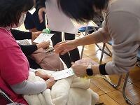 おもに ふれ合い室利用者を対象に、学校としての取組を紹介し、みんなで「あいうべ体操」(口の運動)や「早口言葉」で交流しました。