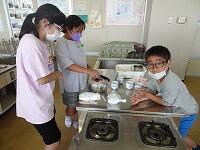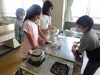ガスこんろのつけ方を学び、お湯を沸かして、