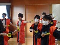 みなさん元気に登校できました。バスの中ではバスレクを楽しみました。