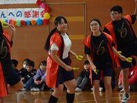 きょうは、5年ぶりに「ボランティアのみなさんへの感謝会」を実施しました。全校生で「校歌」を歌ったり、6年生の「よっちょれ」を披露したりしました。
