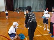 投げる運動を中心に、腕の振り方や重心移動など、投げ方のコツを教わりました。