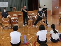 6/8(水)文化庁の「文化芸術による子ども育成事業」による、岩舟武蔵太鼓の方々の演奏会・実技体験が行われました。