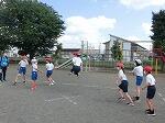 後半の、玉投げゲームでは相手コートに必死に玉を投げ入れる姿が見られ、