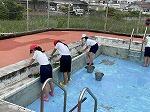 自分たちで一生懸命きれいにしたプールに入るのが楽しみですね
