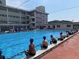 6年生は今日の5時間目、ついに待ち望んだプールに入りました。プール清掃を頑張った分、プールに入るのが何倍も楽しく気持ちよかったようです。プールに入るときはマスクを外すため感染症予防にも努め、距離をとり活動しました。