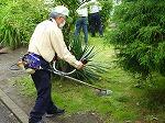 慣れた手つきで、駐車場の植木の剪定や除草をしていただきました。