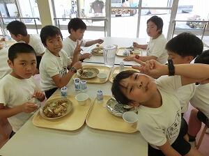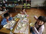 初めての給食体験です。お箸も上手に使っていて、すばらしい!!