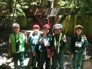 グループで仲良くコースを回り、太平山を「見たり」「聞いたり」「さわったり」。