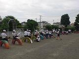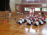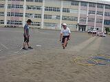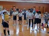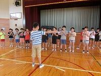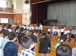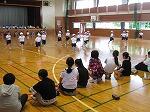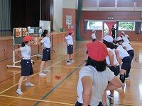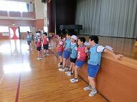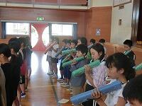 27日(月)、6年生が1年生のシャトルランの手伝いをしました。