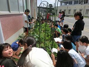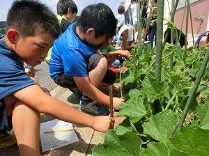 子どもたちの手ぐらいの大きさだった苗は、青々と元気良く伸びていました。