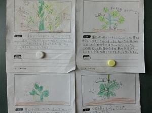 理科の授業で、チョウのたまごと幼虫の観察をしました。