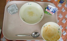 お昼ごはんは、「カレーライス」。みんな食欲旺盛。おいしかったね!