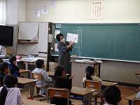 お二人とも岩舟町で育った方で、戦争当時のお話を聞くことができました。どの子もとても真剣に話を聞いていました。また、当時の写真や資料、防空頭巾・洋服なども見せていただき、二度と戦争をしてはいけないことや、どれだけ私たちが幸せな日々を送っているのかなど改めて実感することができました。貴重なお話をしていただき、ありがとうございました。