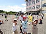 今日は、昼休みに「1年生を迎える会」もありました。1年生はもちろん、みんな楽しそう!!校庭でみんなで「ドロケイ」というおにごっこをしました。