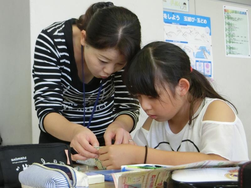 針を手に、緊張気味だった子どもたちでしたが、分からないところを丁寧に教えていただいたり、褒めていただいたりするうちに、表情が柔らかくなりました。 「本返し縫い」「半返し縫い」「かがり縫い」の3つの縫い方をマスターし、2時間の授業が終わるころには、小物作りに挑戦する子もいました。