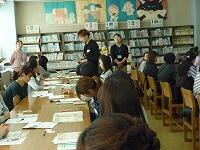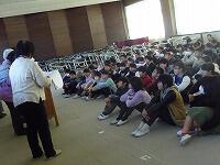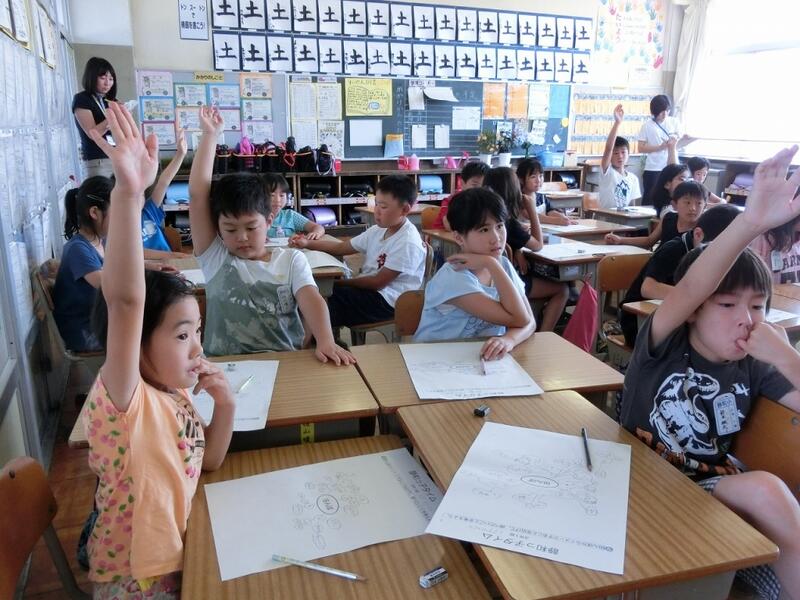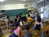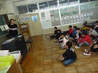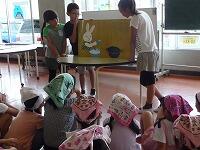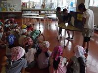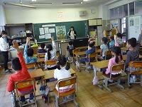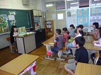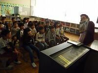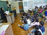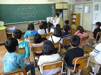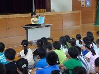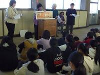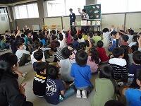 本校では、毎週木曜日、低学年と高学年に分かれて、隔週ごとに読み聞かせを実施しています。今回は、1~2年生が対象でしたが、1年生も身を乗り出すほど興味を持ち、どの学年も集中して聞いていました。