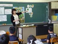 6月20日(水)、岩舟中の栄養教諭・大竹先生にお越しいただき、2年生で、食育の授業を行いました。 「やさいとなかよくしよう」 という授業で、健康な体をつくるためには、好き嫌いしないで野菜を食べることがいかに重要か、そのわけを一緒に考える内容でした。「好きな野菜、嫌いな野菜、その理由」などのアンケート結果を発表したり、野菜当てクイズを行ったり、野菜と健康に関する紙芝居をしたりしながら、子どもたちは、自然な形で野菜に興味を持ち、野菜を食べることの大切さを、意欲的に考え、楽しく学習することができました。