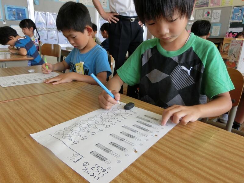 2年生は「たしざん」のプリント学習です。どの学年も、基礎・基本となる内容の習熟をめざしてがんばっています。