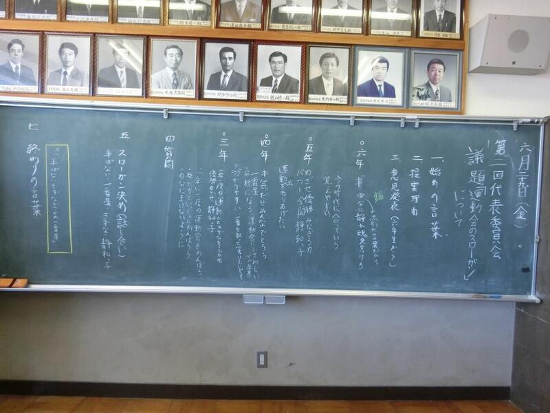 今回は、運動会スローガンについての話し合いでした。各クラスから持ち寄ったスローガンを発表し合い、使いたい言葉を選んで作り上げたものの中から、多数決で決定しました。