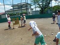 18日(水)、玉入れの玉を使って2人組になり 1学期最後のボール投げ運動が行われました。先週は 運動委員会企画でストラックアウトを行うなど 子どもたちのボール投げへの関心は高く、どの学年も 楽しく練習していました。