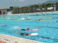 練習初日の今日は、バタ足、クロール、平泳ぎなど、自分の選択したコースに分かれて練習しました。子どもたちは、「25m泳げるように練習するぞ!平泳ぎができるように頑張ります!」などと、それぞれが自分の目標に向かって元気いっぱい頑張っていました。この後も、自分の決めた目標に向かって積極的にチャレンジして、充実した夏休みになることを願っています。