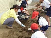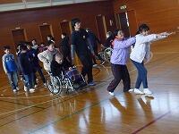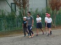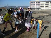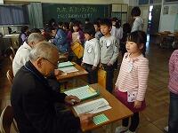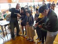 100名程のお年寄りの皆様が学校に来てくださり、子どもたちと共にサツマイモを火床に入れてから、1・2年生とおじいちゃん・おばあちゃんの連合チーム8チームで、輪投げと玉入れを行いました。 輪投げではおじいちゃん、おばあちゃんが1・2年生に投げ方のコツを教えてくださったり、励ましの声かけをしてくださったり、子どもたちがお年寄りのプレーに拍手を送ったりと、楽しい時間を過ごすことができました。また、ゲームの後は、焼きたてのお芋をみんなで一緒に食べました。