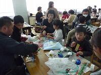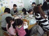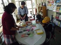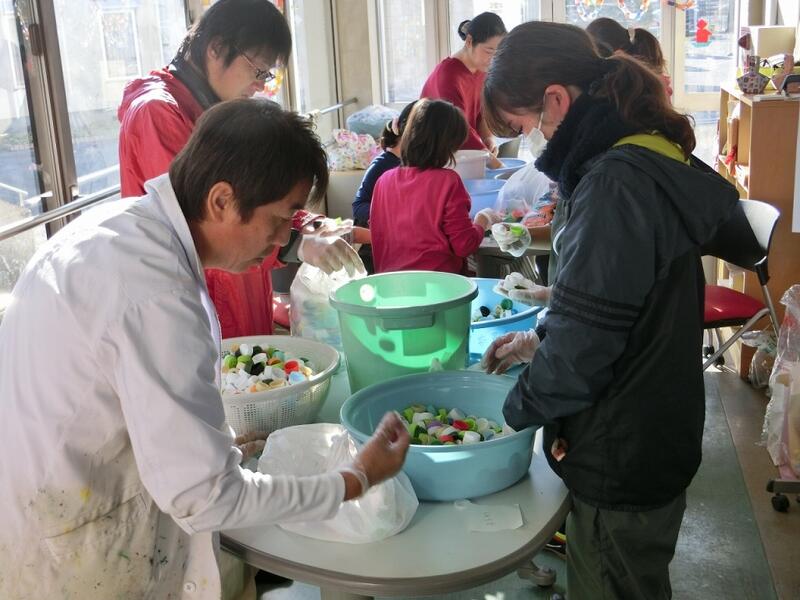 グループに1~2名のボランティアさん・感謝です! ボタンを付けたり、名前の縫い取りをしたりして、作品完成!!