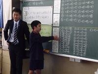 単元名は「わり算の筆算」で、仮商の見つけ方と、仮商の修正の仕方を考える内容でした。子どもたちは、商の立て方を試行錯誤しながら考え、児童同士で意欲的に聞き合い学び合い活動を行うことで、思考を整理し理解を深め、筆算による計算方法を身に付けることができました。放課後の授業研究会では、児童の反応や授業の展開・コーディネートに対して、先生方の意欲的な協議が行われ、先生方にとっても効果的な指導方法をいろいろな視点から学ぶ機会となりました。
