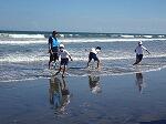 海の波と鬼ごっこをしたり、海水をひしゃくですくったりしました。