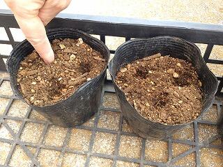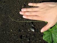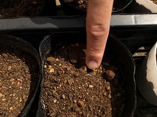 ミニひまわりの種は、指で2cmくらいの穴をあけ、種を入れて土をかけます。