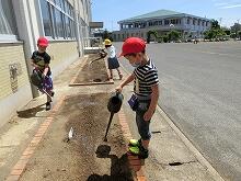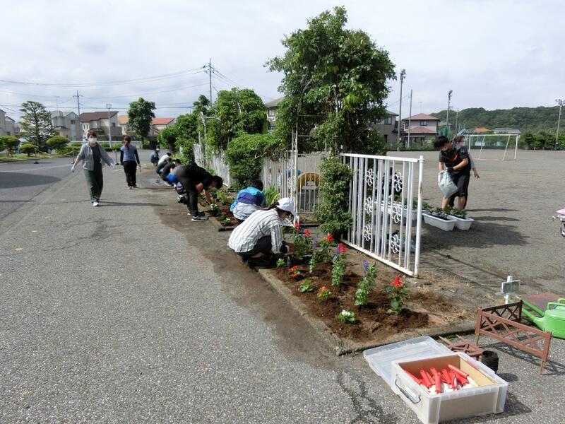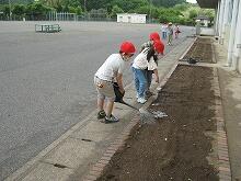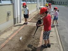 1年生の花壇に花の種をまきました。あさがおやひまわりなどたくさんのお花の種をまいたので芽が出るのが楽しみですね