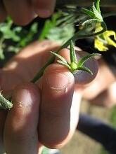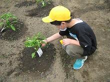 赤ちゃんピーマンも大きくなったところ、つぼみがふえたところなどをかんさつして、生活プリントに書こう。