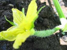 キュウリの花です。キュウリの赤ちゃんは、花の中ではありません