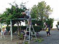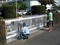 藤棚の藤や周辺の植木の剪定 駐車場南フェンスのペンキ塗り 正門の門扉のペンキ塗り