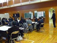 養護教諭の過去5年間の本校での流行状況報告・問題提起、児童保健委員代表のハンカチ・ティッシュ調査結果報告の後、学校医・橋本義孝先生の講話がありました。その後、PTA研修部(保護者)や保健委員(児童代表)、教職員による班別協議・発表会を行いました。