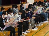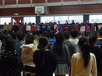 「口を縦に大きくあける」、「足は肩幅に開く」などの点に気を付けながら歌い、よりきれいな合唱を目指して一生懸命練習に励んでいます。