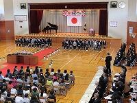 子どもたちはこの1年間で学んだことをふり返りながら、校長先生の話を真剣に聞いていました。修了証の受け取り方、話を聞く姿勢、校歌斉唱など、式に臨む態度からは子どもたちの成長が感じられ、来年度においての活躍が期待されます。