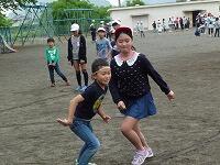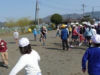 今回は、仲良し班の顔合わせということで、班ごとに自己紹介をしてから集合写真を撮り、その後、校庭で班ごとに楽しくゲームを行って遊びました。