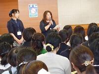 栃木消防署 ・岩舟分署から7名の方が来てくださり、実習用の人形を使って心肺蘇生法のポイントやAEDの操作方法を分かりやすく説明してくださいました。その後、本校職員が、岩舟分署の方々からご指導を受けながら、意欲的に研修を行いました。