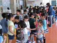 校長先生のお話の後、2年生と5年生の代表児童による「1学期を振り返って」と題した作文発表がありました。 また、終業式終了後は、児童指導主任による夏休みの過ごし方についてのお話がありました。