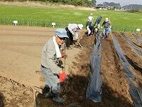 ふれあい館の方による学校の畑の苗植え準備作業に感謝!