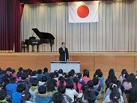 1年間を振り返って(4年生代表) 校歌斉唱 児童指導主任・春休みの安全について