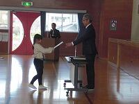 最初に表彰を行いました。標語、絵画、習字、家庭科、持久走・・・。たくさんのお友達が表彰を受けました。表彰されたみなさん、おめでとうございました!!