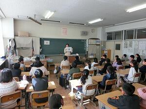 2年2組では、今日の昼休みに養護教諭の先生と保健委員のみなさんによる手洗い指導が行われました。