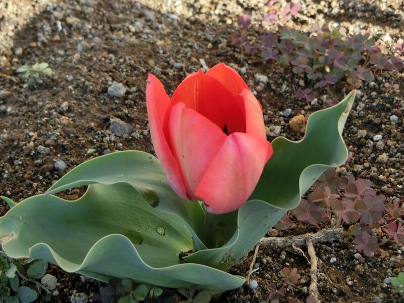 花壇には、1年生が厚生保護女性会の皆様と一緒に植えたチューリップの球根が、かわいい花を咲かせ、